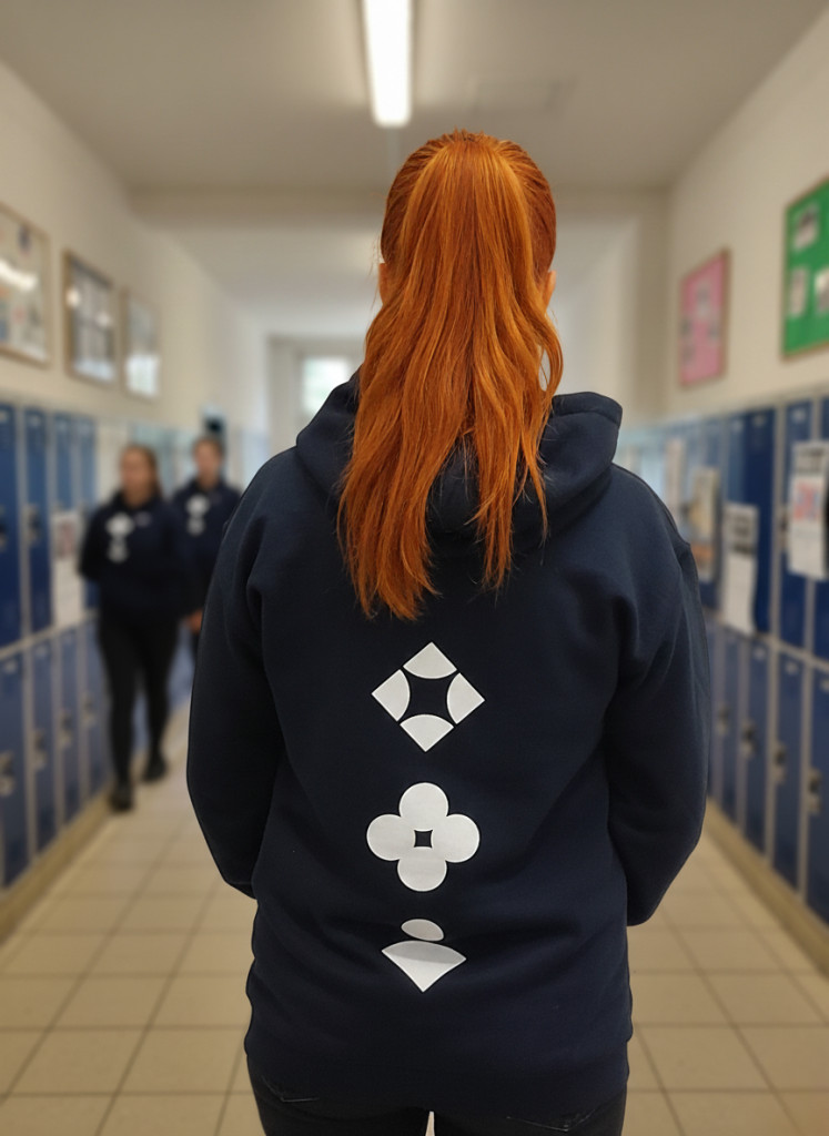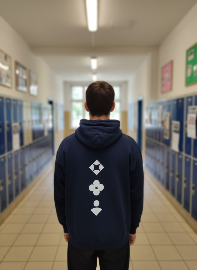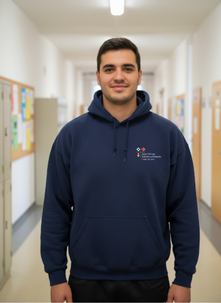 Apor Vilmos Katolikus Főiskola logózott Sötétkék kapucnis bebújós pulóver S méret
